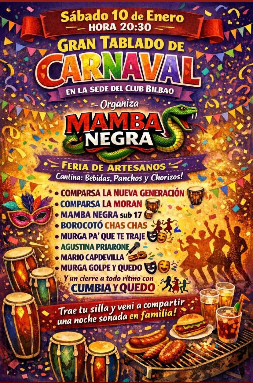🎭 Concurso Regional de Murgas 2026📍 Fray Bentos – Teatro de Verano📅 Del 5 al 8 de febrero⏰ 20:30 hs🎟 Entrada libre y gratuita Cuatro noches a puro carnaval con murgas de todo el país. ¡Vení a vivirlo! 🎶🎉