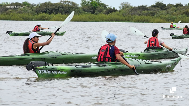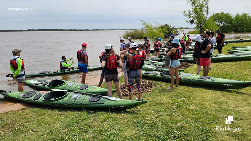 Los responsables de las escuelas de Kayak de Nuevo Berlín y San Javier, brindaron una charla previa sobre la metodología de navegar en estas embarcaciones, así como las medidas de seguridad a la hora de utilizarlas.
